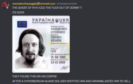 3. "THE GHOST OF KYIV ICED THE FUCK OUT OF DONNY T.... ITS OVER" - 10:15PM ?? Jul. 13/2024